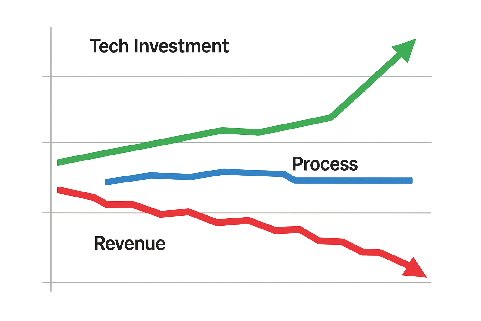 The technology itself wasn’t broken. The implementations went live, systems were installed, and reports ran on schedule. But the results never matched the investment. Why? Because the company treated technology as the solution, when in reality it was only one piece of the puzzle.